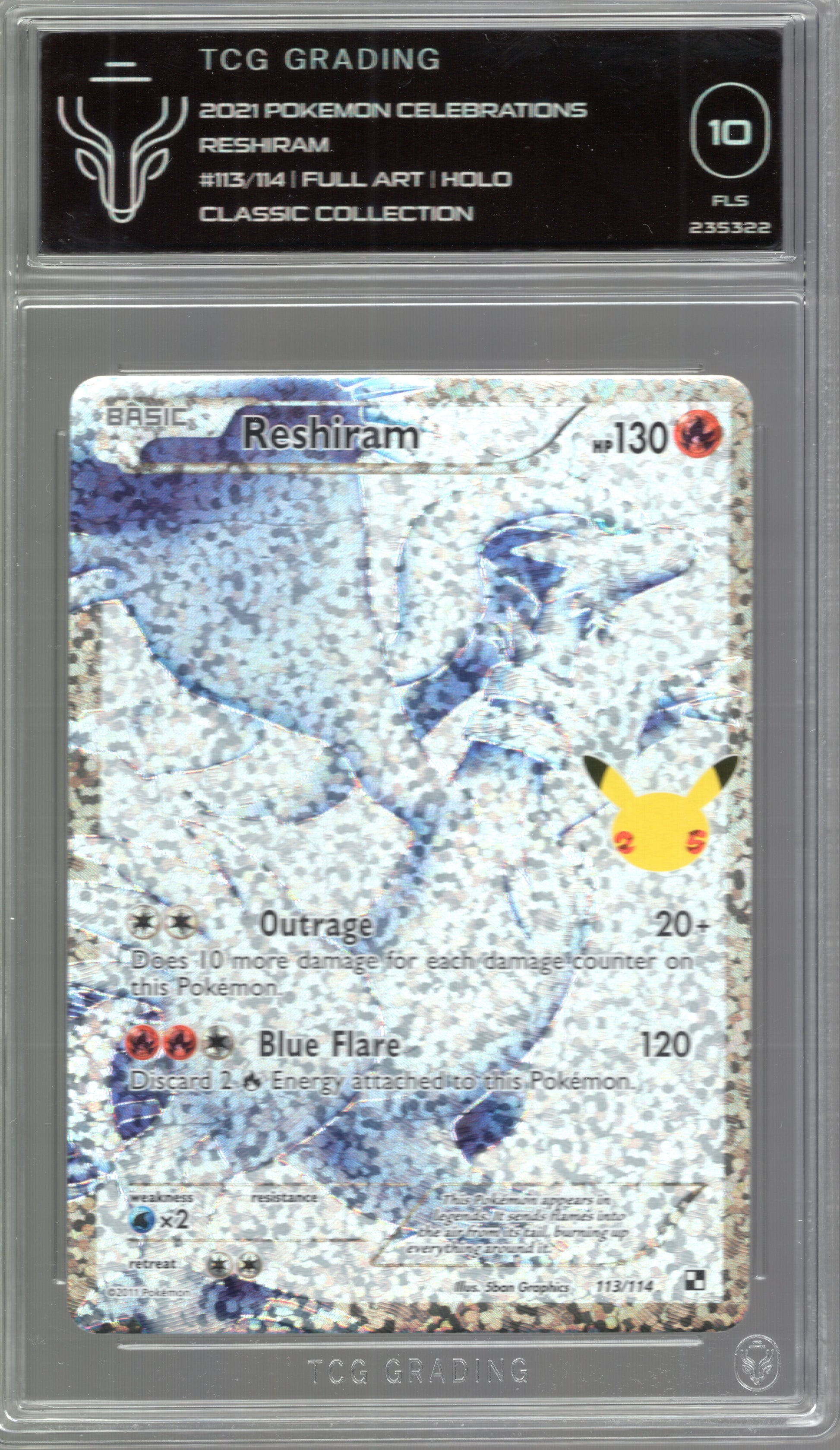 Reshiram – Pokémon Celebrations 113/114 Full Art Holo – TCG Graded 10 (FLS)