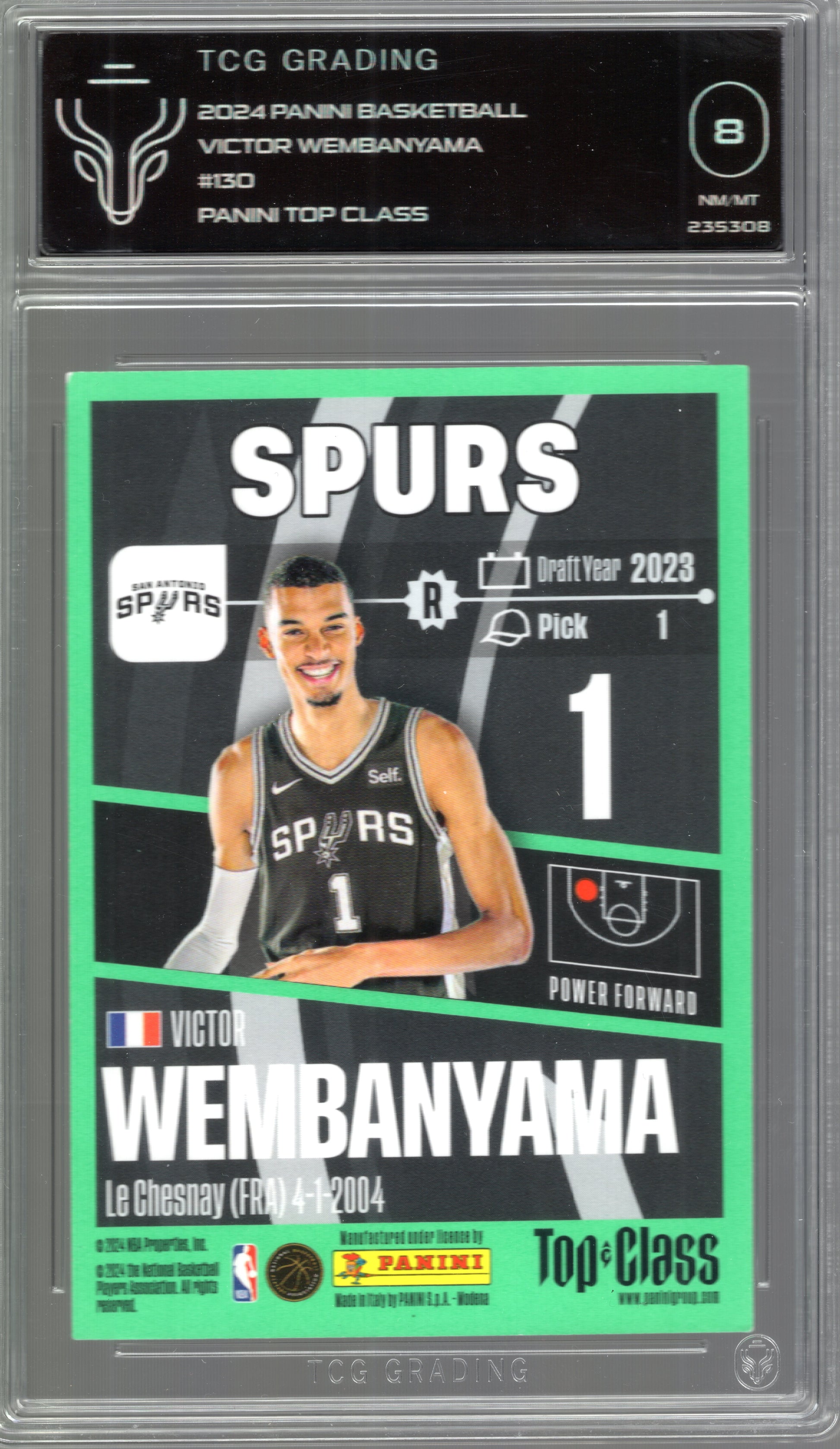 Victor Wembanyama 2024 Panini Top Class Rookie Card #130 - TCG Grading 8 NM/MT